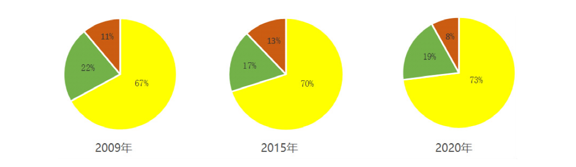 | 等级 | 2009年 | 2020年 | 2009—2020年的变化 |