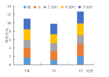 为探究云南金沙江流域优质茄芯烟叶钾营养元素的合理施用量,提高烟叶的产质量,于2023年4—8月在云南省昭通市绥江县中城镇开展试验,以‘云雪39号’为供试品种,设置T1(施钾量为468 kg/hm2,氮:磷:钾=1:1.15:2.6)、T2处理(施钾量为630 kg/hm2,氮:磷:钾=1:1.15:3.5)和当地常规施肥CK(施钾量为546 kg/hm2,氮:磷:钾=1:1.15:3)共3个处理,研究不同钾营养元素施用量对云南绥江茄芯烟叶生育期、植物学性状、农艺性状、抗病性、烟叶外观质量、烟叶化学成分及产质量的影响。结果表明:烟株发病率随钾肥施用量增加而下降;T2处理在大田期发病率最低;不同的钾肥施用量对大田期烟株主要生育期和农艺性状影响表现不明显,但随着钾肥施用量的增加,烟株的茎围、株高、叶面积系数都有不同程度的增加,T2处理的植物学性状、外观质量显著优于其余2个处理,烟株含水率表现适中;T2处理鲜烟叶产量相比CK、T1处理分别增加了2773.50、3639.00 kg/hm2,产值分别增加了16013.00、18268.50元/hm2;调制后T2处理干烟叶产量相比CK、T1处理分别提高了6.50%、13.72%,T2处理上、中、下部烟叶中1级烟比例均显著高于CK、T1处理;随着钾肥施用量增加,雪茄烟叶的总糖、总氮、水溶性氯、氧化钾、K/Cl、还原糖/总植物碱、总氮/植物总碱逐步趋向于国内外优质茄芯烟叶,其中T2在3个处理中烟叶化学成分表现最稳定,特别是氧化钾含量与尼加拉瓜优质茄芯烟叶最接近。综上所述,T2处理是最适合昭通金沙江流域优质茄芯烟叶的钾肥用量。