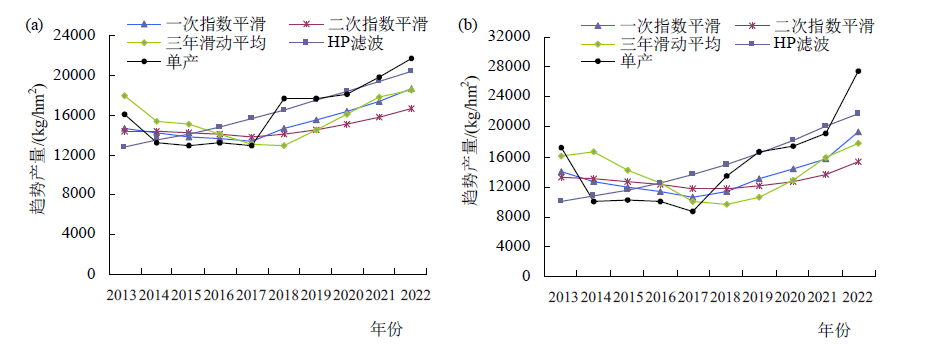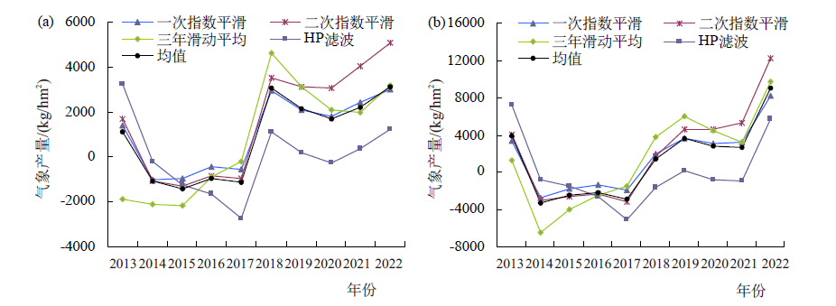 李心怡, 张祎, 赵艳霞, 等. 主要作物产量分离方法比较[J]. 应用气象学报, 2020, 31(1):74-82.